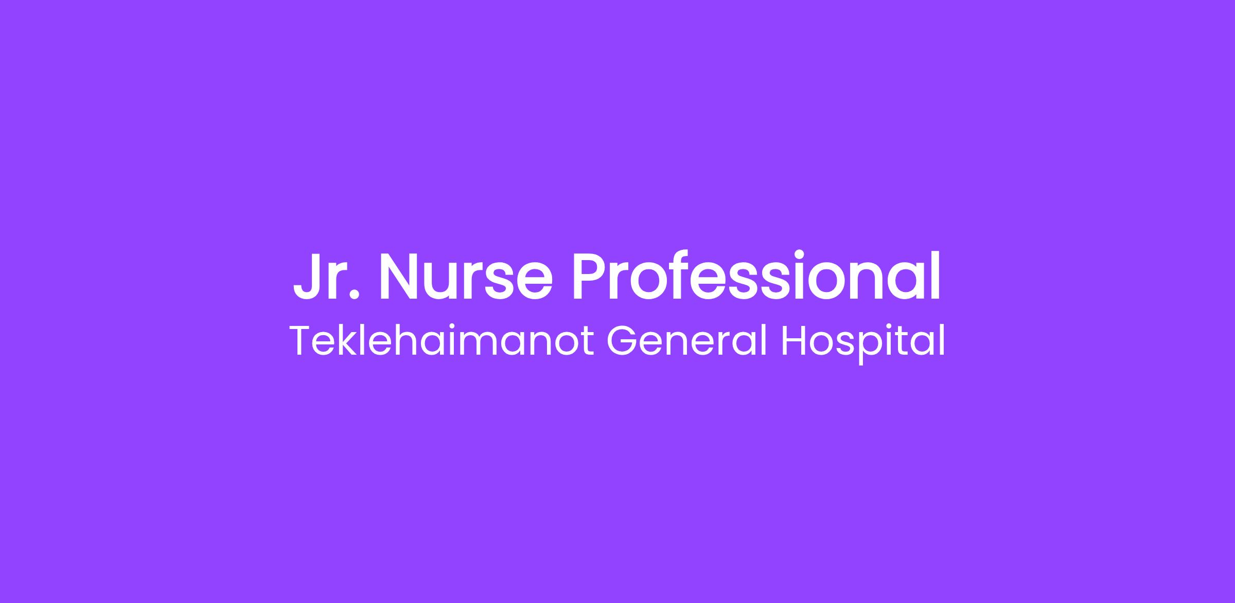 The Jr. Nurse Professional at Teklehaimanot General Hospital plays a crucial role in delivering patient care within a dynamic healthcare environment. This entry-level position is ideal for fresh graduates looking to begin their nursing careers. The role involves supporting nursing staff, ensuring patient comfort, and adhering to healthcare protocols.