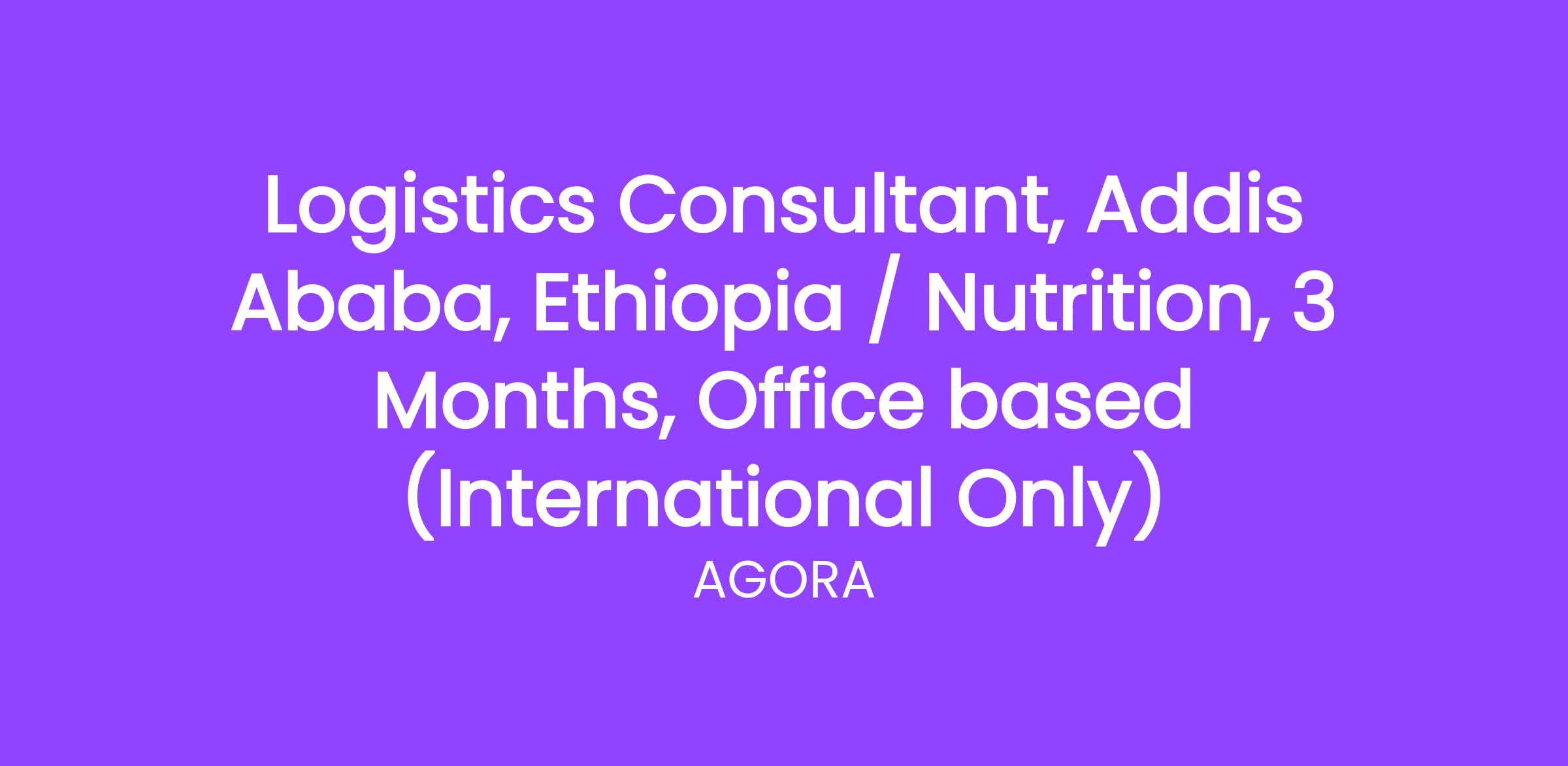 UNICEF, as the lead agency for nutrition supply procurement in Ethiopia, requires a Logistics Consultant to support the Nutrition and Supply Sections in planning and managing the nutrition supply chain. The assignment will focus on addressing supply chain bottlenecks, strengthening forecasting, pipeline management, distribution, monitoring, and partner capacity, to ensure the timely and accountable delivery of life-saving nutrition supplies and the uninterrupted implementation of nutrition programmes in complex humanitarian and development contexts. The consultant will also support procurement and logistics-related quality assurance for equipment and technology transfer for the local production of nutritious foods.