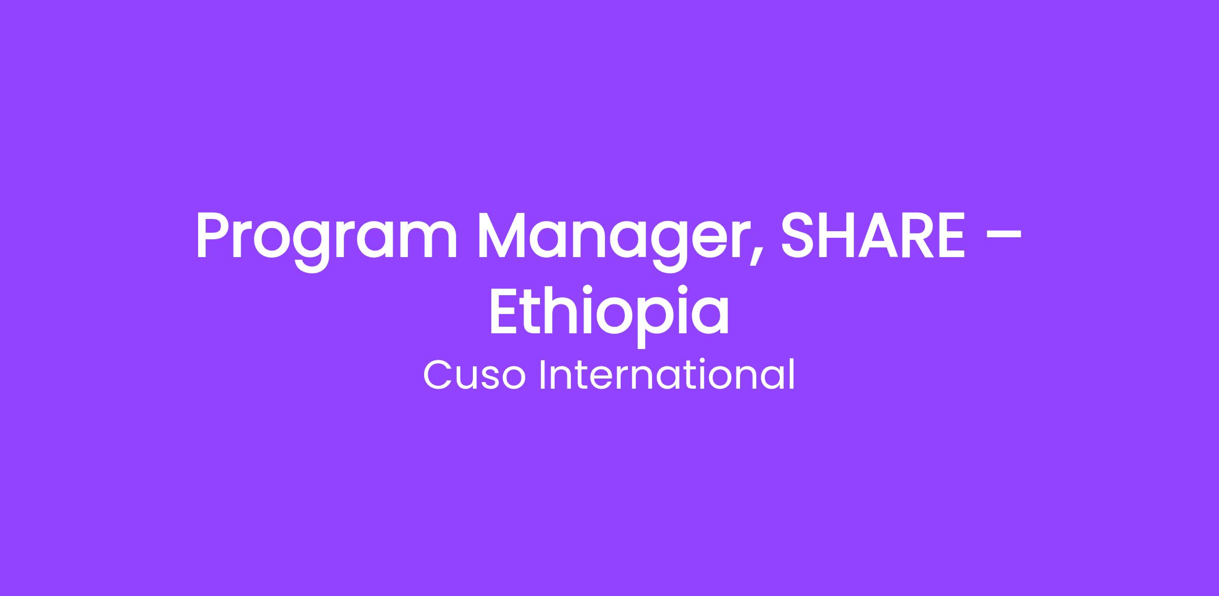 - Serve as the de facto country lead for the organization in Ethiopia, ensuring effective delivery of SHARE in line with approved strategies, agreements, and organizational policies.